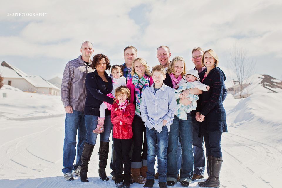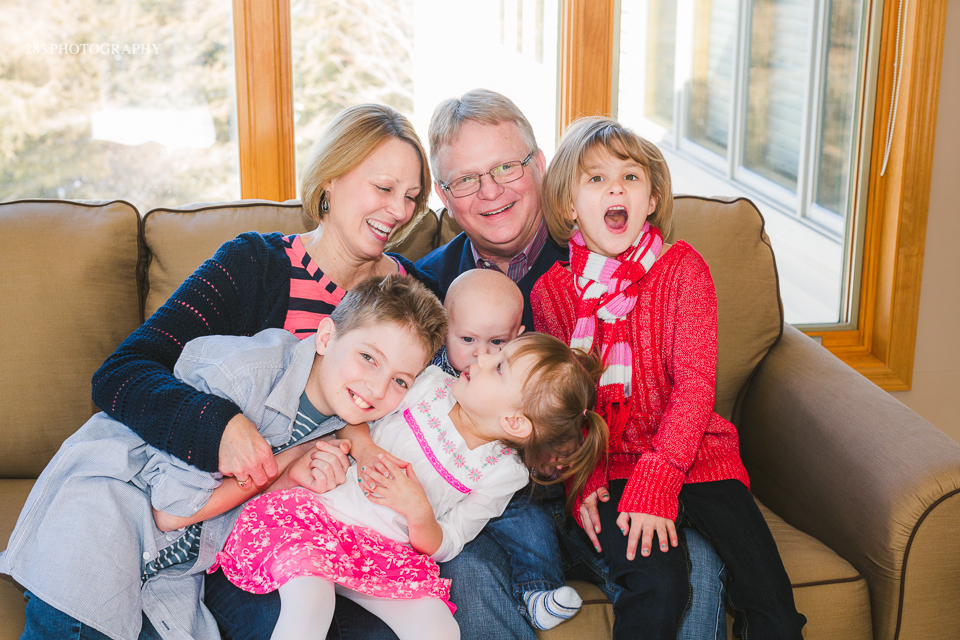 I was really excited to have the opportunity to meet up with the Compton family earlier this year at Cindy and Lee’s beautiful home in Wisconsin, just across the Minnesota border. It was getting close to their wedding anniversary, their son had recently gotten home from afghanistan, and the entire family was in town for a visit. Their daughter Heather and husband James have an adorable son, Waylon, who was about to turn 6 months old as well. What better time then to have a photographer come in and get some lifestyle photos of the clan?? With so many people in one household, of course it is a challenge getting everyone together for a good group photo. We had a lot of fun as we go to that point!