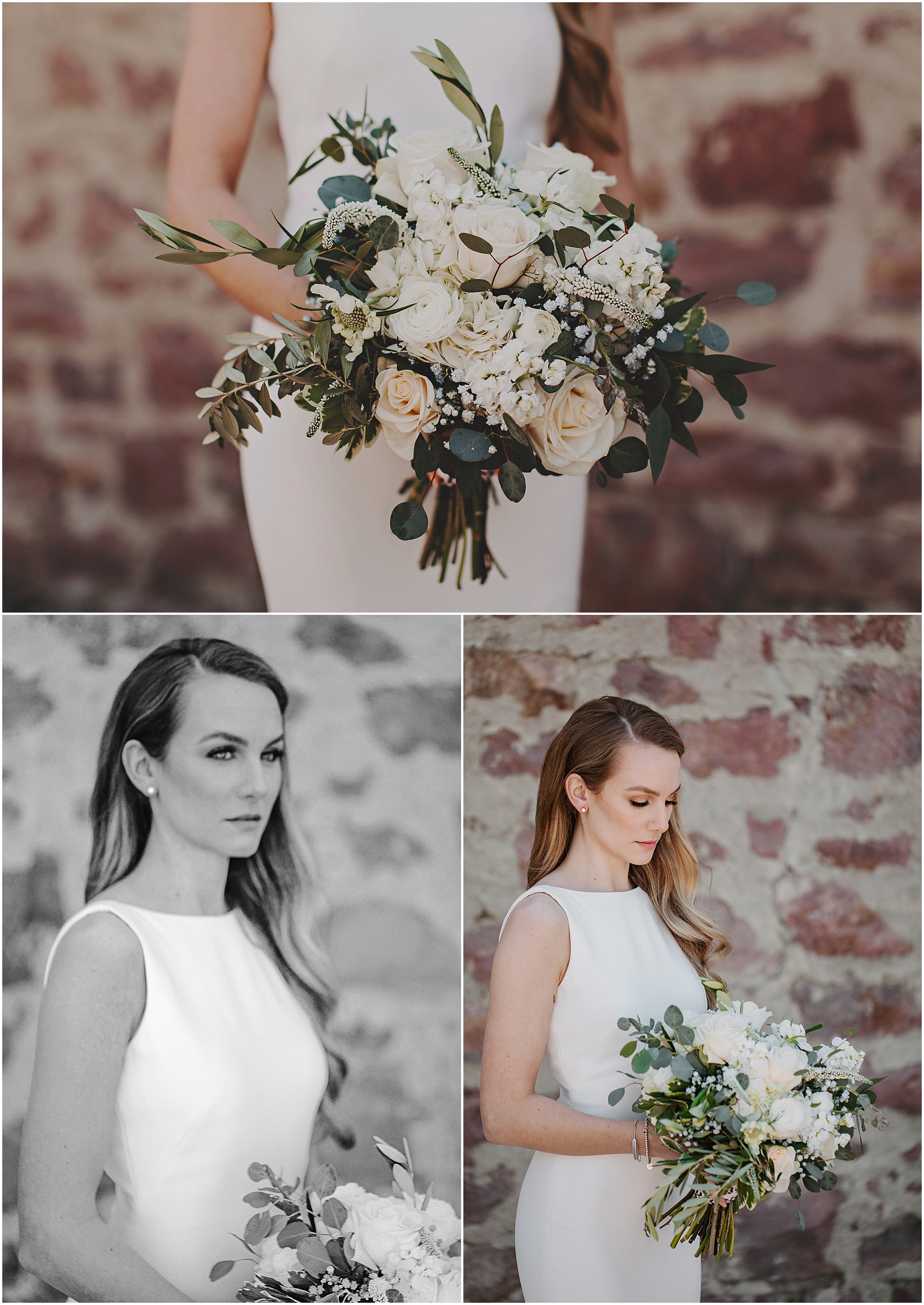 Chantae’s bouquet (Bella Rosa Floral) was exquisite, wrapped in her beloved grandma’s blue and white ascot.  She wanted to honor both of her grandmothers, so she wore her other grandma’s gold wedding band on her right hand.  Her dress (Marie and Marie Bridal) was hands down the most elegant dress I have ever seen in person.  She wore it like she was born to wear it, and it looked like it was made just for her.